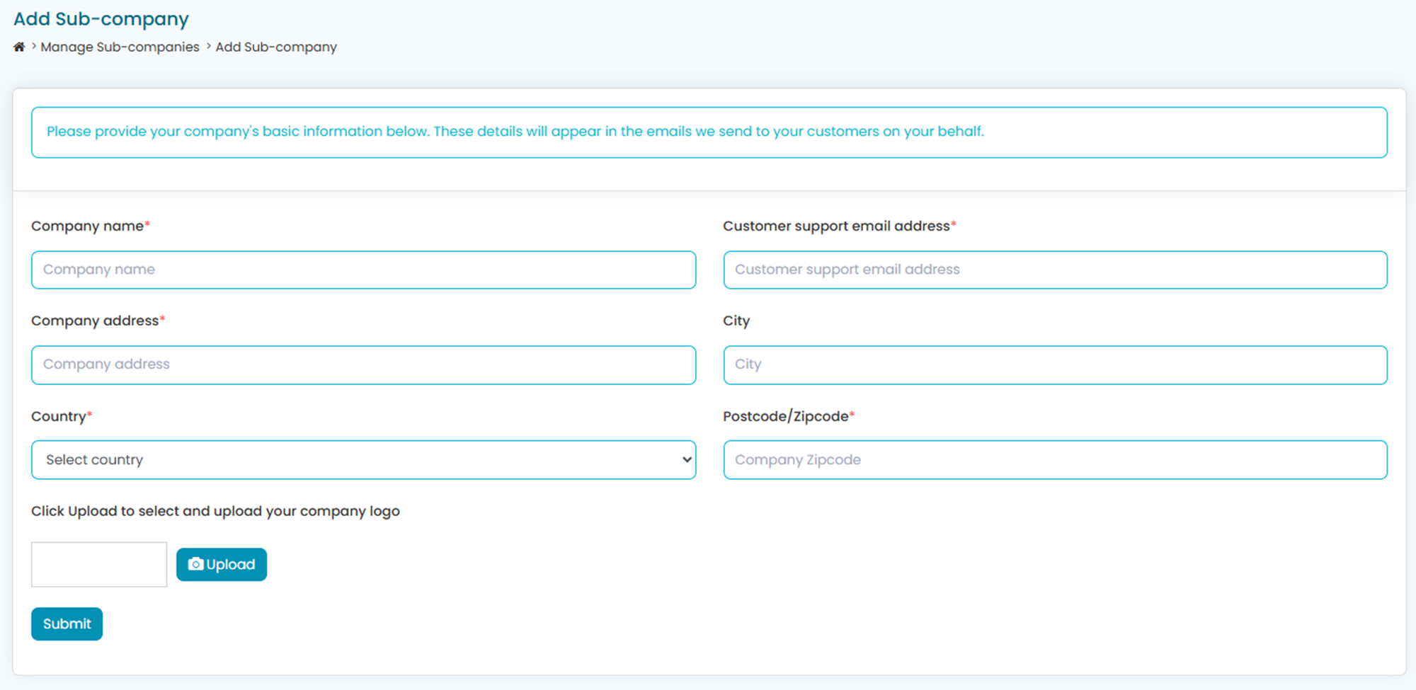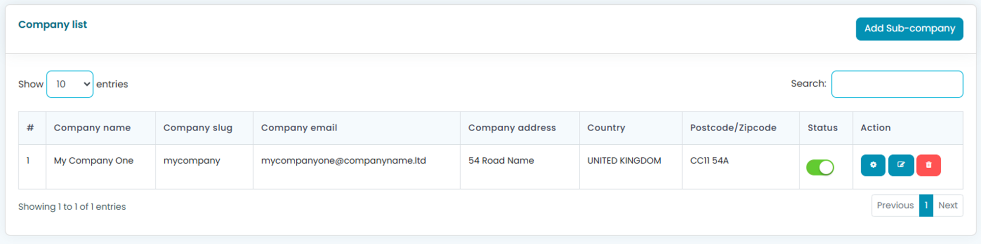 Note: Once Sub-company is activated you need to create company details for every company so users can correctly select from each, distinct, company brand.