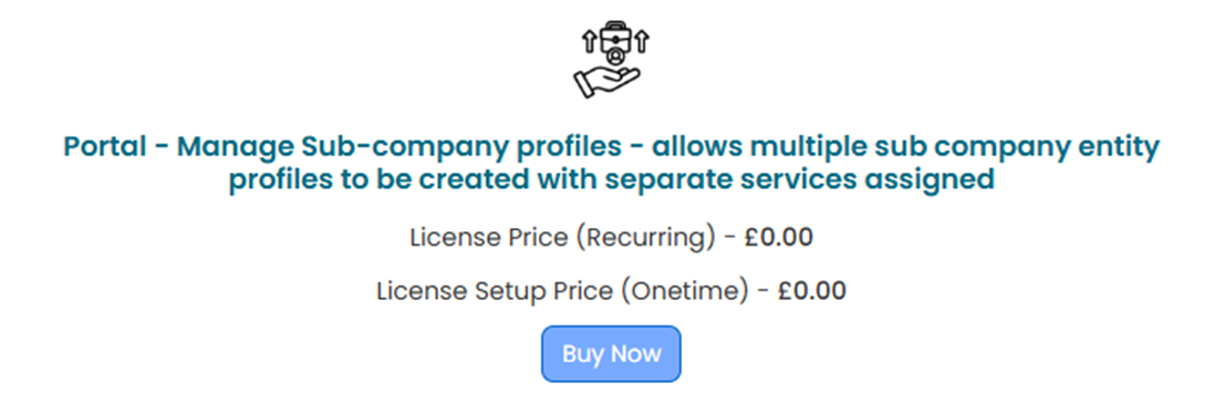 Sub company control is a Paytia licence that needs to be added before the service is available to use.