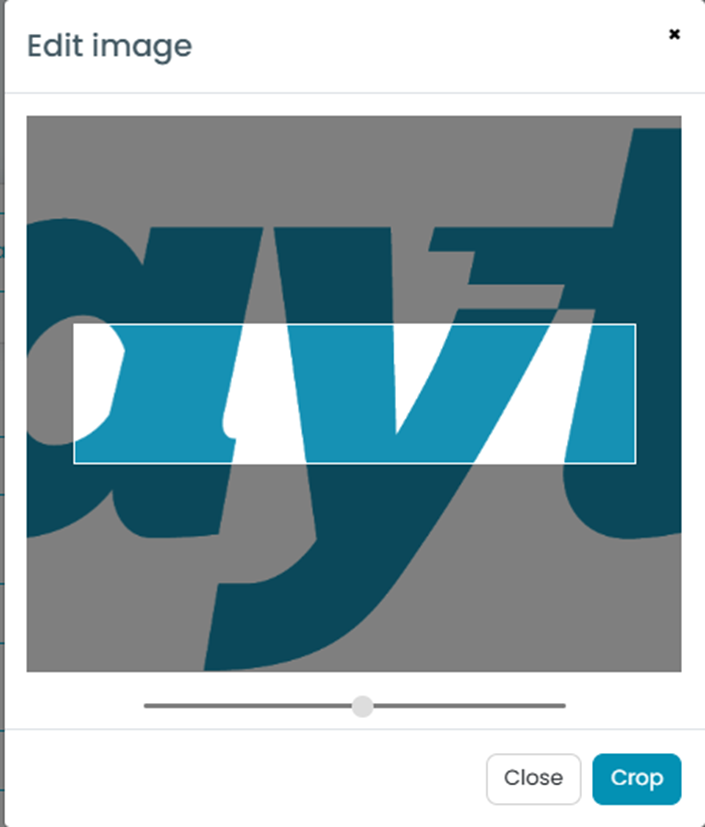Adding your logo - use the slider to zoom in and out until your log fits in the highlighted box. Then use your cursor to move the logo left and right to position it. We suggest moving the logo so it appears far left.